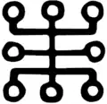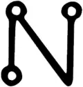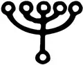 Алфавит является зашифрованным еврейским алфавитом. Как и у того, направление письма — справа налево.