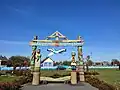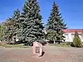 • Деревянный памятник с рельефным изображением Колоска и Калинки