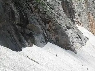 Под языком ледника имеется невысокая ледяная пещера из которой выходит мощный поток холодного воздуха. Этот воздух либо засасывается из бергшрунда, либо выходит из пещер, в которых пропадает вода, стаявшая с ледника.