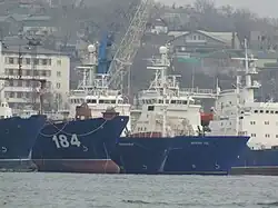 - Модель транспорта «Маньчжур» венчает ростральную колонну при въезде во Владивосток;
