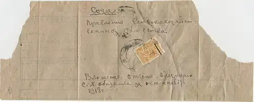В начале 2010 года была найдена уникальная обёртка бандероли с отчётом Адлерского сельскохозяйственного общества за октябрь-ноябрь 1918 года, посланным в Сочи Правлению сельскохозяйственного общества, которая снимает все сомнения в реальном почтовом использовании выпуска.[12]