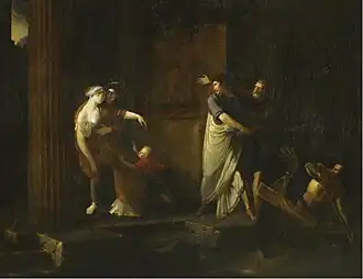 Заговорщики решили убить диктатора на последнем заседании сената перед его отбытием в парфянский поход — в курии Помпея в иды марта (15 марта 44 года до н. э.)[157]. Источники сообщают, что в этот день с утра Брут, опоясанный кинжалом под тогой, творил суд, действуя с удивительным хладнокровием. Именно к нему и Кассию перед заседанием подошёл сенатор Попилий Ленат, чтобы сказать шёпотом: «Всей душой желаю вам счастливо исполнить то, что задумали, но советую не медлить: про вас уже заговорили». Вскоре Марку сообщили, что его жена внезапно почувствовала себя плохо и находится при смерти, но он не пошёл домой, ожидая Цезаря, который задерживался[158][159][160].