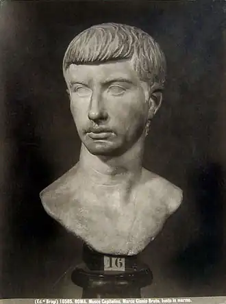 Марк Ю́ний Брут (лат. Marcus Junius Brutus; зима 85 года до н. э., Рим — 23 октября 42 года до н. э., у Филипп, Македония) — римский политический деятель и военачальник из плебейского рода Юниев, известный в первую очередь как убийца Гая Юлия Цезаря. На ранних этапах своей карьеры, в 50-е годы до н. э., считался видным оратором и получил почётный титул princeps iuventutis — «первый среди молодёжи». В гражданской войне между Цезарем и Помпеем встал на сторону последнего (49 год до н. э.). После битвы при Фарсале перешёл на сторону Цезаря и занял видное место в его окружении. Получил претуру на 44 год до н. э. и должен был стать консулом в 41 году. Несмотря на это и на близкие отношения с Цезарем (некоторые источники сообщают, что Гай Юлий мог быть его биологическим отцом), Брут стал одним из организаторов и непосредственных участников убийства диктатора, которое произошло 15 марта 44 года до н. э. Целью заговорщиков было восстановление республики, но они не получили поддержки в Риме и были вынуждены оставить Италию. Брут уехал в Македонию, где собрал армию для борьбы с политическими наследниками Гая Юлия — Марком Антонием, Октавианом и Марком Эмилием Лепидом, создавшими Второй триумвират. Он разбил цезарианского наследника Иллирии и силой заставил города Ликии дать ему денег и солдат. Объединившись с Гаем Кассием Лонгином, Брут сразился с главными силами врага при Филиппах в октябре 42 года до н. э. и покончил с собой после поражения.