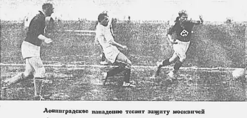 Сборная Москвы в матчах с Одессой в ноябре 1928 — правильно (на фото слева направо в каждом ряду согласно расстановке) Леонов — Карпенко, Лапшин — Столяров, Сушков, Никишин — Н.Троицкий, Савостьянов, Исаков, В.Блинков, Холин