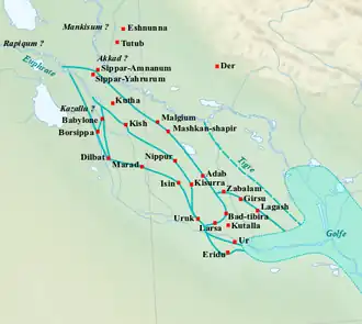 Машкан-шапир (Телль Абу-Дувари) — древний город в Месопотамии на древнем русле Тигра, посвящённый богу Нергалу. Первое упоминание города приходится на эпоху правления Саргона Древнего (2334—2279 г. до н. э.). С начала 2 тысячелетия до н. э. — пограничный город царства Ларса. При царе Син-иддинаме сооружены городские укрепления. При Рим-Сине Машкан-шапир получает статус второй столицы государства Ларса. Около 1764 года до н. э. город завоёван Хаммурапи и присоединён к Вавилонскому царству. При Самсу-илуне (1749—1712 до н.э.) город покинут жителями.