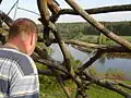 «Мая́к на Угре́» — лэнд-артовский проект Николая Полисского, созданный совместно с Никола-Ленивецкими промыслами в 2004 году. Первый долговечный объект, построенный в Парке «Никола-Ленивец», и ставший символом парка. «Маяк» находится в деревне Никола-Ленивец на берегу реки Угры в месте её изгиба, высота объекта 18 метров, наверху находится смотровая площадка[1]. «Маяк» создан местными жителями за 3 месяца по проекту Полисского и по предложению национального парка Угра. Материал: ветви вязов, уничтоженных короедом. Постройка возведена без гвоздей, с использованием металлического каркаса. До «Маяка» на этом берегу стояли временные арт-объекты Полисского — «армия снеговиков» и «сенная башня»[2].