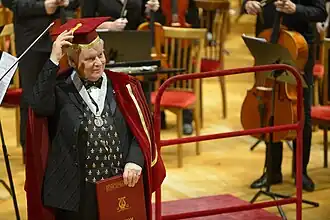 Традиция присвоения почетного звания существовала в Петербургской консерватории с 1878 года вплоть до революции 1917 года и была возрождена в 2000 году[13]. С тех пор церемония вручения атрибутов звания — диплома и мантии Почетного профессора — стала неотъемлемой частью Фестиваля. В рамках «Международной недели» были награждены: Юрий Темирканов (2003), Родион Щедрин (2005), Саулюс Сондецкис (2006), Кшиштоф Пендерецкий (2007), Валерий Гергиев (2012), Елена Образцова (2014), Давид Герингас (2016), Владимир Федосеев[14] (2018), Юрий Симонов[15] (2019), Ольга Бородина и Максим Венгеров[16] (2020), Давид Голощекин (2021), Николай Буров (2024). Звание Почетного профессора присуждается за выдающиеся заслуги в сфере музыкального искусства и подтверждает высокий статус награждаемого.