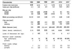 Главное значение же ITRS в том, что этот план — не только прогноз динамики параметров, но и содержит точные указания относительно того, какими конструкторскими и технологическими средствами новые параметры могут быть достигнуты, когда и какие технические средства должны быть разработаны и освоены производством. Таким образом, ITRS является руководством к действию для разработчиков не только приборов, но и техпроцессов и технологического оборудования.[2]