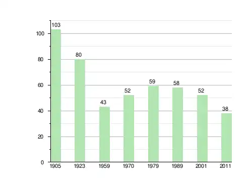 | 1905[3] | 1923[4] | 1959[5] | 1970[5] | 1979[6] | 1989[7] | 2001[8] | 2011[9] |