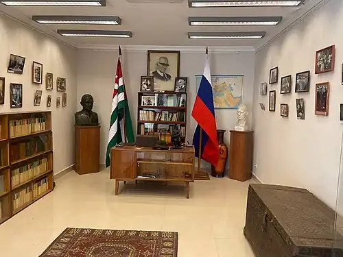 - ↑ Главная библиотека Апсны: путеводитель: к 90-летию со дня основания ГУ «Национальная библиотека Республики Абхазия им. И.Г. Папаскир» / сост. Т. В. Нанба, Л. М. Берулава. — Сухум: Национальная библиотека Республики Абхазии, 2011. — С. 17. — 34 с.