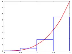• ограничим функцию прямоугольником (-мерным параллелепипедом в случае -мерных измерений), площадь которого можно легко вычислить;