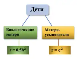 - Показатель корреляции между биологическими родителям и их детьми, усыновленными в другую семью.