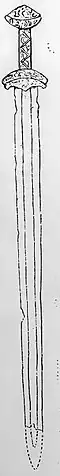 Меч представляет собой клинок 85,3 см в длину и 5 см в ширину. Рукоять достаточно нетипична для того времени, прибалтийско-скандинавского типа, орнаментированная в древнерусском стиле, с изображением чудовища.