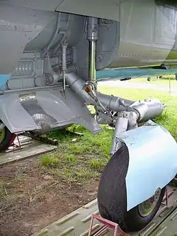 Носовая стойка шасси оборудована механизмом разворота колеса МРК-З2-25, предназначенным для разворота колёс на углы, пропорциональные отклонению педалей управления.