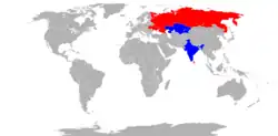 Государства-эксплуатанты МиГ-27 (красный — бывшие, синий — действующие)