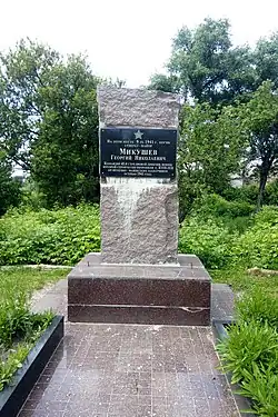 ↑ Во время оккупации города немецкими войсками могила Г. Н. Микушева была разрушена гитлеровцами, после освобождения города восстановлена.