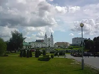 Минск (бел. Мінск) — столица и крупнейший город Беларуси, административный центр Минской области и Минского района, в состав которых не входит, поскольку является самостоятельной административно-территориальной единицей с особым (столичным) статусом. Крупнейший транспортный узел, политический, экономический, культурный и научный центр страны. Является ядром Минской агломерации. Десятый по численности населения (без учёта пригородов) город в Европе, седьмой — после Москвы, Санкт-Петербурга, Ташкента, Киева, Алма-Аты и Баку на территории бывшего СССР. Город расположен недалеко от географического центра страны и стоит на реке Свислочь. Площадь составляет 353,6 км²[3], население — 1 996 730 человек[4] (без учёта пригородов). Город-герой (1974).