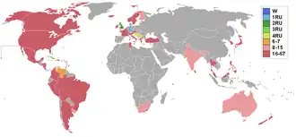 • Исландия, Люксембург, Маврикий, Перу, Сейшельские острова и Турция последний раз участвовали в 1973 году.