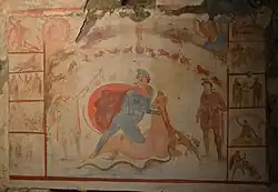 Митра убивает быка. Фреска II века (предположительно) из митреума в Марино