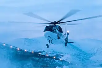 В носовой части под радиопрозрачным обтекателем находится метеолокатор. Шасси вертолёта энергопоглощающее, при падении с высоты 15 м возгорание топлива исключено.