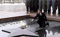 Президент России Дмитрий Медведев открывает Вечный огонь после реконструкции, 2010 год