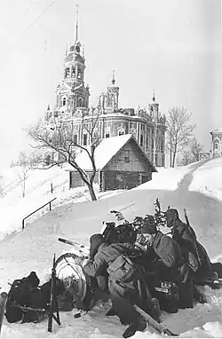 - Троицкий мужской монастырь — последняя церковь ансамбля была разрушена немцами в январе 1942 года.