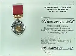 - ↑ Молодому передовику животноводства. Дата обращения: 3 марта 2019. Архивировано 6 марта 2019 года.
