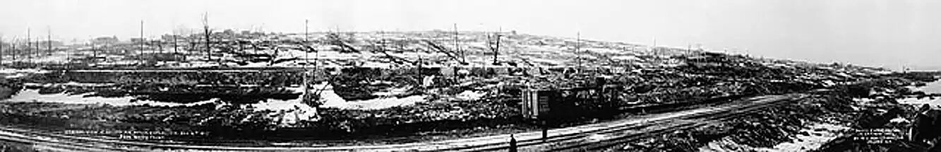- ↑ Elements still scourge desolated city of Halifax, 1050 bodies at morgues; all Germans being arrested. The Gazette. Vol. CXLVL, no. 295. 10 декабря 1917. p. 1.