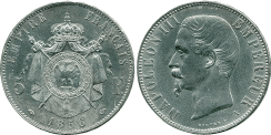 | 1853 | Серебро | 10 г | 27 мм | 1853 — 1866 | рубчатый | Номинал | Наполеон III | Всего выпущено: — 1 909 726 шт. |