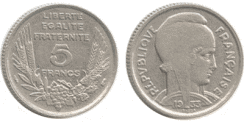| 5 франков 1933. Дизайнер Люсьен Базо | ||||||||||||