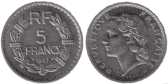 5 франков | 1917 | 4 октября 1918 и 2 сентября 1939 | 12 октября 1933 | 31 декабря 1933 и 1 января 1963 |