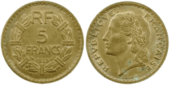 | 5 франков 1934. Дизайнер Андре Лаврие | ||||||||||||