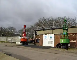 Во дворе музея находится баржа-пениш Pompon Rouge («Красный помпон»). В незначительно переоборудованном трюме баржи расположена экспозиция, посвящённая речному судоходству, включающая модель шлюза.