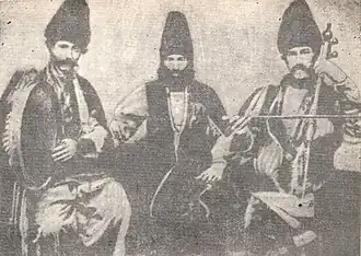 ![]() Исполнитель мугамов ханенде Сеид Шушинский (второй слева) со своим ансамблем в 1916 году | |