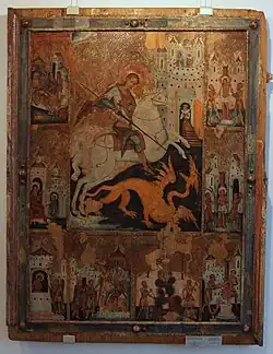 | «Спас в славе», середина XVI века, дерево, левкас, село Проминь | «Юрий Змееборец с житием», Волынский иконописец 1630 года, дерево, левкас, село Боблы | «Спас Вседержитель», Иов Кондзелевич, конец XVII века, дерево, левкас, село Городище |
