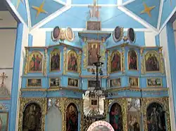 В интерьере церкви имеется богатая коллекция икон конца XIX, начала XX веков, резной деревянный аналой, коллекция деревянных и металлических крестов.[2] Пятиярусный иконостас середины XIX века украшен замечательной резьбой. Подлинный иконостас в советское время был вывезен в Эрмитаж, поэтому музей подобрал похожий деревянный резной иконостас XIX века.