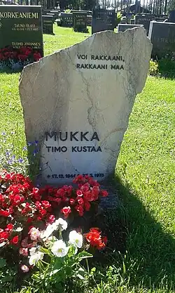 Тимо Кустаа Мукка (фин. Timo Kustaa Mukka; 17 декабря 1944, Болльнес, Евлеборг, Швеция — 27 марта 1973, Рованиеми, Лапландия, Финляндия) — финский писатель , поэт, сценарист, художник. Лауреат Государственной премии Финляндии по литературе (1966).