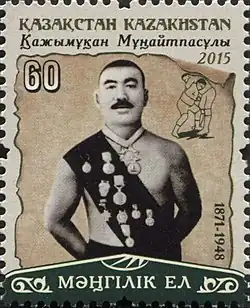 - ↑ Спустя век трюк Кажымукана повторил казахстанский палуан и установил мировой рекорд. Дата обращения: 9 июля 2019. Архивировано 9 июля 2019 года.