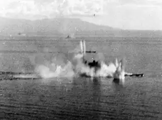Однотипный «Ямато» также подвергся бомбардировке и получил несколько бомбовых попаданий, однако они не были эффективными и не повлияли на боеспособность и ходовые качества корабля.