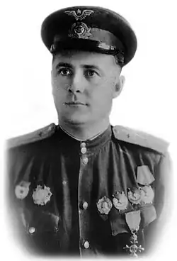 - 1 2 Награждён в соответствии с Указом Президиума Верховного Совета СССР от 04.06.1944 «О награждении орденами и медалями за выслугу лет в Красной Армии»