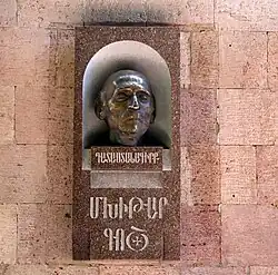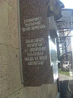 ![]() Памятник Мхитару Гошу перед фасадом Матенадарана. Скульптор Г. Чубарян | |