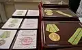 Удостоенным почётных званий вручается соответствующий нагрудный знак и удостоверение к почётному званию. |