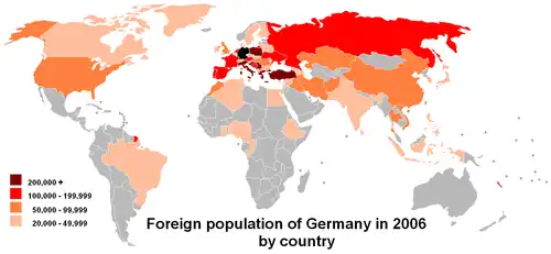 - ↑ Zahl der Ausländer in Deutschland zum Jahresende 2014 bei 8,2 Millionen (нем.). DeStatis (16 марта 2015). Дата обращения: 4 апреля 2015. Архивировано 8 апреля 2015 года.