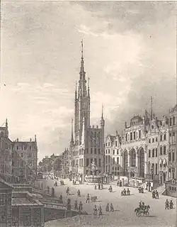 Был построен по инициативе главы города Варфоломея Шахмана; расположен на Длинном рынке, напротив входа в здание Dwór Artusa.