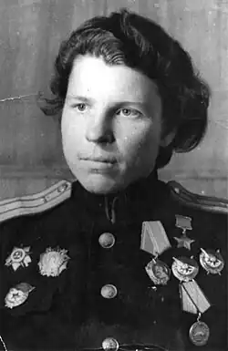 - Командир авиационной эскадрильи гвардии майор Никулина Евдокия (Дина) Андреевна.