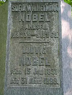 - ↑ Нобель, Людвиг // Петербургский некрополь / Сост. В. И. Саитов. — СПб.: Типография М. М. Стасюлевича, 1912. — Т. 3 (М—Р). — С. 266.