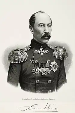 - Орден Святого Владимира 1-й степени за отличие при обороне Севастополя (20.11.1854)