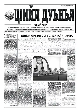 21 июля 1928 года была основана газета Цlийи Дуьнья. Это была первая лезгинская газета, издающаяся на лезгинском языке. Основателем её был лезгинский учёный-языковед Гаджибек Гаджибеков. Первый номер газеты был отпечатан в Буйнакске. Со второго номера и до июля 1931 года газета печаталась в Махачкале[2]. Газета являлась общереспубликанской и выпускалась с периодичностью раз в неделю, а позже 3 раза в неделю. Тираж газеты был доведён Гаджибеком Гаджибековым до 6 тысяч экземпляров. Несмотря на огромную популярность и широкую связь с лезгинской общественностью, газета ЦӀийи дуьнья была переведена в разряд районных и переведена в Ахты, где функционирует и поныне. За прошедшее время коллектив газеты выпустил более 8200 номеров. 1 августа 2008 года в Ахтах было отпраздновано 80-летие газеты[3].