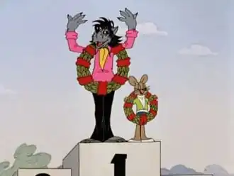 В ходе погони на велосипедах Волк и Заяц врезаются друг в друга и создают тандем, на котором выигрывают велогонки и получают награду от Олимпийского Мишки – торт с шоколадными фигурками в виде них.