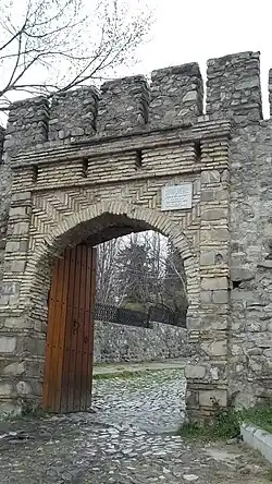 Шекинская крепость, построенная с целью защиты города с северо-восточной части, примечательна тем, что стена крепости составляет в длину порядка 1,3 км, высота стен в северной части около 4, в южной — около 8 метров, толщина же её около 2,2 метров.[18] Вдоль стены на всем протяжении расположена 21 защитная башня. С севера и юга крепость закрыта арочными воротами[19]. Высота крепости над уровнем моря 750 метров — на севере и 710 метров — на юге[20].